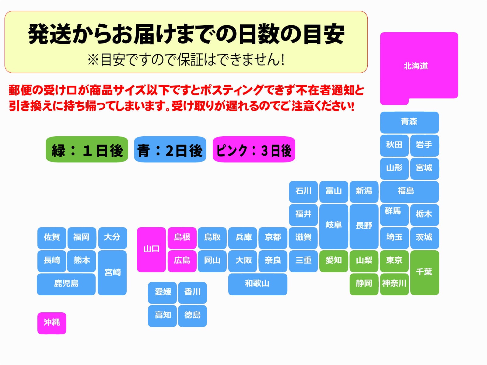 発送からお届けまでの日数の目安